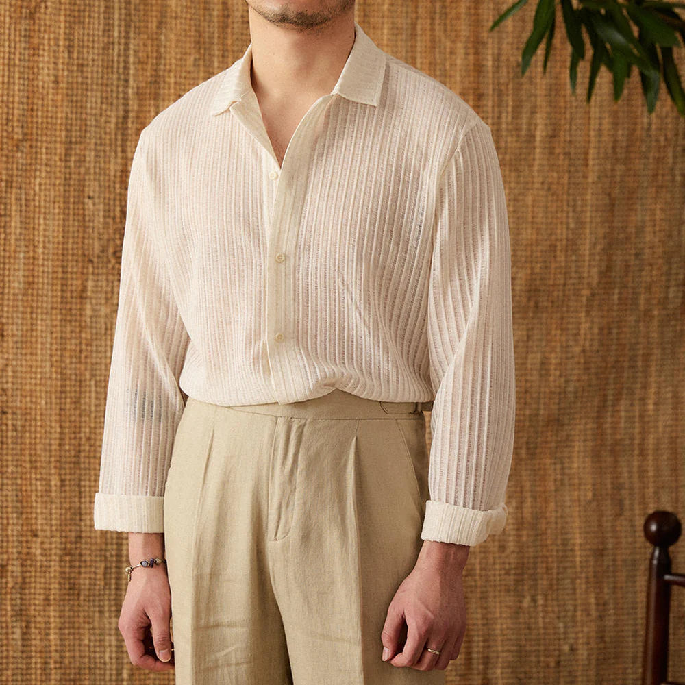 İnce dokulu yapısı ve hafif dikey çizgili deseniyle öne çıkan bu gömlek, yumuşak pamuk kumaşıyla gün boyu konfor sunar. Zarif görünümüyle hem şehir stiline hem de yaz akşamlarına mükemmel uyum sağlar. Hafif yapısı sayesinde nefes alabilir bir kullanım sunarken, doğal duruşu da şıklığınızı sade bir şekilde tamamlar